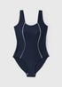 Make a splash in our Souluxe Navy Piped Sports Swimsuit, the perfect combination of style and performance. Crafted from high-quality nylon, this swimsuit ensures both durability and comfort, allowing you to move with ease and confidence in the water.