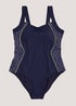Learn morePerfect for trips to the gym or the local spa, this timeless sports swimsuit puts style and practicality at the forefront. Part of our Souluxe collection, the swimming costume features a navy base colour, alongside blue abstract panelling with lime piping for a splash of vibrancy. Sturdy straps and a curved neckline complete the design.