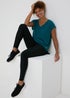 Learn moreTimeless and stunning, our v- neck t-shirt in teal will become a staple in your everyday wardrobe. Crafted from luxuriously soft and comfortable fabric, this versatile top offers unmatched comfort all day long. Layer over sports leggings and sport bra for a comfortable work out outfit or pair with jeans for casual everyday look.