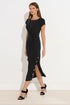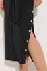 Seamlessly blend elegance and edge with this new-in midi dress. Crafted from a comfortable jersey fabric, it features popper details, short sleeves, and a flattering tie waist belt. Effortlessly style with strappy heels for a sophisticated look you can feel confident in.
