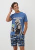 Kick back and unwind in our Star Wars Blue Pyjama Short Set. This two-piece set includes a short-sleeved tee and matching shorts, both crafted from a soft and durable cotton blend. The tee features a bold Star wars logo on the chest, while the shorts have a comfortable elastic waistband. Whether you're lounging at home or running errands, this set is sure to keep you comfortable and stylish.