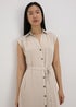 Learn moreYou'll look oh-so-smart in this stone button through midi shirt dress. It's cut to a relaxed fit and has a classic collar, button-down front, and short rolled sleeves to make the perfect shirt dress. The dress also features a waist tie that can be adjusted for a more fitted look. In a classic stone colour, this dress is perfect for any occasion. Dress it up with heels and a blazer for the office or for a summery vibe, add a straw hat, sandals, and a cross-body bag.