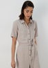 Introducing our Stone Linen Jumpsuit - a blend of elegance, comfort, and style. Crafted from premium quality linen, this jumpsuit is designed to offer a relaxed fit while accentuating the feminine silhouette. The neutral stone colour adds a touch of sophistication, making it a versatile addition to your wardrobe. Featuring a button-down front, short sleeves, and a tie waist for an adjustable fit; this jumpsuit is the epitome of effortless style.