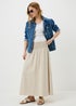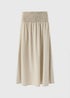 Stone Linen Rich Shirred Waist Midaxi Skirt
