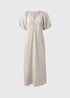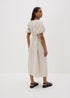 • Stone Puff Sleeve Tie Waist Midi Dress