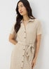 Embrace effortless style with our Textured Shirt Midi Dress in stone. Cut from a sumptuous blend of fabrics, this dress is guaranteed to turn heads wherever you go. Featuring a flattering collar and button-down front, tie waist belt in a textured finish.