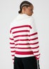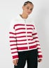 Stay snug and stylish this season with our stripe zip knitted cardigan, crafted from a soft knitted material, this cardigan provides you with unbeatable comfort and warmth. This classic zip-through cardigan features a timeless red and white stripe pattern, accentuated with a flattering silhouette that's perfect for both casual and formal occasions. Pair it over a simple t-shirt and jeans for a laid-back, casual look or layer it over a dress for an added touch of warmth and sophistication.