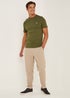 Simple doesn't have to be a bad thing - just take a look at this cool and stylish T-shirt from the T&W collection. The plain piece is styled in timeless khaki and made from 100% cotton for maximum comfort all day long. Relaxed short sleeves and a casual crew neckline complete the design - great for wearing with shorts, jeans and joggers alike! Model Height: 6ft 2. ** _Take your look from work to weekend with T &W, our contemporary trend-led collection. Putting a refined spin on smart casual separates, this cutting- edge range will elevate your everyday wardrobe by adding a polished finish. Offering a fresh take on modern menswear trends, get set to take the lead and make a bold style statement. _**