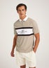 Spruce up your polo shirts with this dapper addition! Featuring a contrasting white collar, this stone polo shirt comes with a panel style that'll never go out of fashion, together with Roman numeral detailing to the chest panel. Finish your look with jeans and a smart pair of trainers. Model Height: 6ft 2.