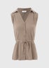 Effortlessly tailored, endlessly versatile. This sleeveless waistcoat features a soft textured fabric and a flattering tie waist belt for a customizable fit. Finished with a collared v-neck and a button up front, with side splits.