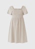 - Shirred bodice for a flattering fit