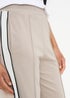 Blend comfort with sporty sophistication in the Taupe Side Stripe Wide Leg Trousers. Featuring a relaxed wide leg and contrast side stripe detailing, these trousers offer an effortlessly stylish silhouette, perfect for off-duty days or elevated casual looks.