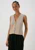 Taupe Solid Linen Button Vest
