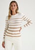 Perfect for the unpredictable transitional months, combat the chill with this timeless jumper. Styled with a natural base and taupe stripe design, the jumper features an intricate baby cable texture for a signature finish. Cosy long sleeves and a simple crew neckline complete the design.