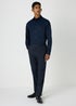Taylor & Wright Navy Textured Slim Fit Flexi Waist Trousers