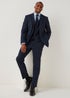 Put a refined spin on your occasionwear with the tailored fit Orwell suit jacket by Taylor & Wright. Ideal for work, weddings and race days alike, the jacket is styled in deep navy with a subtle check design and crisp contrast lining. Notch lapels, two front button fastenings and functional pockets complete the design. Pair with the matching suit trousers (S2910027_C270) and waistcoat (S2910029_C270) for the full formal look. Model Height: 6ft 1/2.
