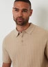 Threadbare Beige Cotton Mix Short Sleeve Textured Knitted Polo Shirt
