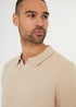 Threadbare Beige Textured Front Short Sleeve Trophy Neck Knitted Polo