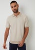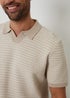 Threadbare Beige Textured Stripe Trophy Neck Knitted Polo Shirt