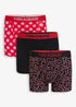 Threadbare Black 3-Pack Christmas Print Hipster Fit Boxer Shorts