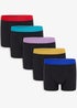 Threadbare Black 5-Pack Contrast Hipster Fit Boxer Shorts