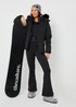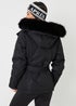 Learn moreStay warm and stylish on the slopes with this ski jacket, designed for ultimate comfort and performance. This ski coat features sheet padding and a microfleece-lined body and hood, offering cosy insulation. The full zip with storm guard and a chin guard has snap fastening ensuring added protection, while the stretchy waist belt with a metal buckle enhances the fit. A 4-piece hood with detachable faux fur trim and ribbed storm cuffs will keep out the cold. With two outer zip pockets, a zip arm pocket, an inner welt pocket, and an inner snow skirt with an elasticated hem band, this coat is perfect for all your skiing needs. Model wears UK size 8.
