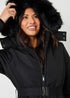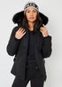 Stay warm and stylish on the slopes with this ski jacket, designed for ultimate comfort and performance. This ski coat features sheet padding and a microfleece-lined body and hood, offering cosy insulation. The full zip with storm guard and a chin guard has snap fastening ensuring added protection, while the stretchy waist belt with a metal buckle enhances the fit. A 4-piece hood with detachable faux fur trim and ribbed storm cuffs will keep out the cold. With two outer zip pockets, a zip arm pocket, an inner welt pocket, and an inner snow skirt with an elasticated hem band, this coat is perfect for all your skiing needs. Model wears UK size 8.