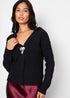 Threadbare Black Bow Detail Cable Knit Cardigan