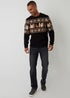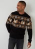• Threadbare Black Cable Knit Fairisle Crew Neck Christmas Jumper