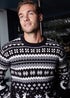 Get into the Christmas spirit this season with this crew neck festive jumper from Threadbare. It features an all over festive jacquard design and has a classic crew neck and ribbed cuffs and hem.