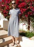 Learn moreYour casual summer wardrobe gets a fresh twist with this midi dress in a smock style from Threadbare. With a round neck and short sleeves, this jersey dress also features two handy concealed side pockets making this dress a functional, versatile piece to update your collection. Made from 100% cotton, this dress is perfect in warmer weather. Model wears UK size 8.