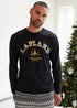 Threadbare Black Cotton Long Sleeve Christmas Fairisle Pyjama Set