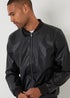 Make a statement with this faux leather biker jacket from Threadbare. Cut in a regular fit and fully lined for comfort, it features a shallow racer collar and full zip fastening for a sleek finish. Adjustable snap cuffs and a self-fabric hem allow you to personalise the fit, while shoulder and chest seams add subtle structure. With two welt pockets and a zipped chest pocket for essentials, this jacket is perfect for layering over a hoodie or jumper this season.