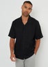 Threadbare Black Kylian Linen Blend Revere Collar Short Sleeve Shirt