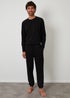 Threadbare Black Peached Cotton Long Cuffed Lounge Set