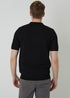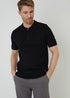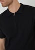 Threadbare Black Quarter Zip Textured Trim Knitted Polo
