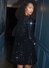 Threadbare Black Sequin Velour V Neck Long Sleeve Mini Dress