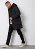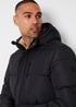 Threadbare Black Showerproof Hooded Longline Puffer Jacket
