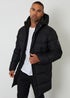 Threadbare Black Showerproof Longline Hooded Puffer Jacket