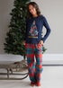 Threadbare Blue Frenchie Cotton Long Sleeve Christmas Check Pyjama Set