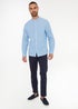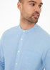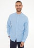Threadbare Blue Linen Blend Long Sleeve Grandad Collar Shirt