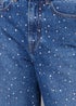 Complete your wardrobe with these rhinestone-embellished jeans from Threadbare. With two front and two back pockets along with a coin pocket, belt loops, and metal button and zip fastening, this wide-leg pair is versatile. Finished with hotfix rhinestones across the front to add some sparkle. The everyday staple in a classic shape brings your denim right up to date. Model wears UK size 8.