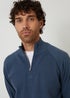 Threadbare Blue Mock Tee Textured Knit Quarter Zip Jumper