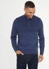 Threadbare Blue Rib Detail Crew Neck Knitted Quarter Zip Jumper