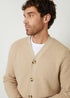 Be comfortable in style in this knitted cardigan from Threadbare. With a V-neckline, ribbed cuffs and hem, this button-up cardigan is the perfect comfortable addition to your wardrobe. Complete with a branded metal tab above the hem and five mock horn buttons on a jersey stitch placket. Made from a super-soft recycled cotton blend yarn, you can wear this textured cardigan as a layering piece during the transitional months. Pair with dark denim jeans, a white t-shirt and boots for a stylish, casual look.