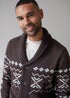 Threadbare Brown Fairisle Shawl Collar Knitted Cardigan