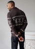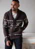Learn moreThis shawl collar cardigan from Threadbare features a fairisle pattern across the chest, back and sleeves with two welt pockets and button fastening. Perfect for bringing style to any winter wardrobe. Other festive styles available.