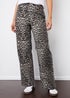 Threadbare Brown Petite Soleil Leopard Print Wide Leg Denim Jeans