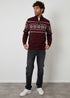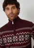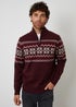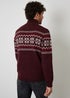 Threadbare Burgundy Fairisle Knitted Quarter Zip Jumper