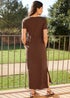 Threadbare Chocolate Cotton Jersey Maxi Dress With Pockets